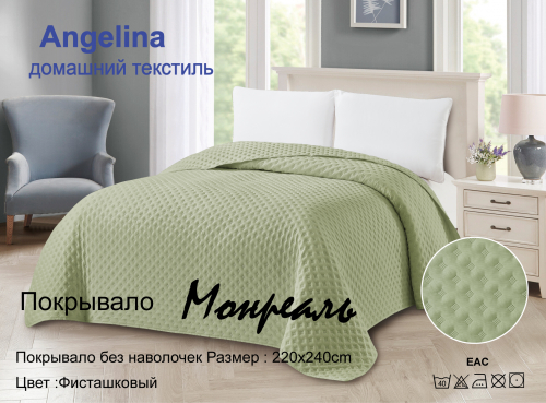 Покрывало "Монреаль" выполнено с помощью современной безниточной стежки - ультрастеп, с наполнителем синтепон, очень прочное и износостойкое, легкий уход - машинная стирка при 30 градусах.