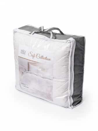 Наполнитель- термоскрепленное синтепоновое волокно, плотностью 150 г/кв.м., имеет полую структуру, высокую воздухопроницаемость, не впитывает запахи и не вызывает аллергических реакций. В синтетическом волокне не заводятся пылевые клещи, грибки, моль и прочие «приятные» соседи по постели.