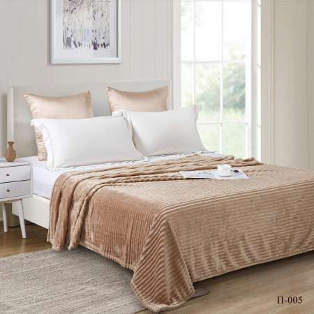 Пледы серии "Мишель" изготовлены из фактурного велсофта, это современный и прочный материала, состав- полиэстер 100%, плотность 280 г/кв.м. Фактура в форме "косички" придает пледу необычный вид, кажется будто он вязанный.