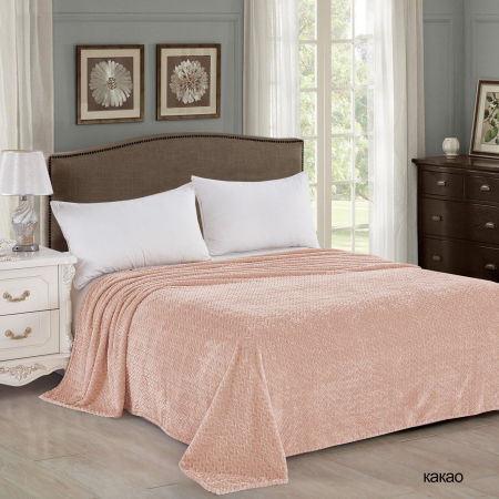 Пледы серии "Мишель" изготовлены из фактурного велсофта, это современный и прочный материала, состав- полиэстер 100%, плотность 280 г/кв.м. Фактура в форме "косички" придает пледу необычный вид, кажется будто он вязанный.