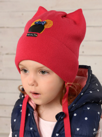 Дополнение: Имитация ушек. Завязки. Стразовая композиция. Аппликация из экокожи, бантик из тесьмы. Подвеска.