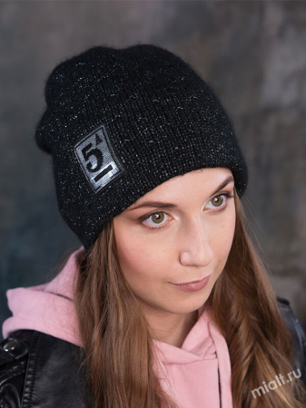 Модель удлиненной формы. Двойная. Благодаря добавлению метанита в состав пряжи имеет сдержанный блеск. Декорирована шевроном из пайеток.
