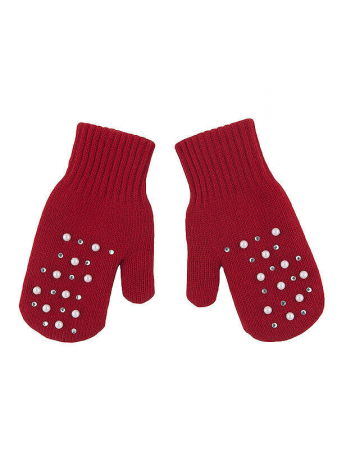 Дополнение: Варежки для девочки, двойные. Декорированы стразами и бусинками.