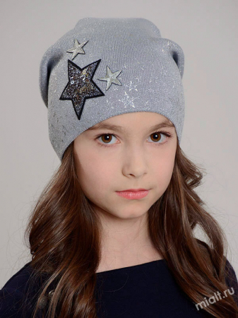Дополнение: Шапочка удлиненной формы, с металлизированной нитью в составе. Декорирована аппликациями в виде звезд.