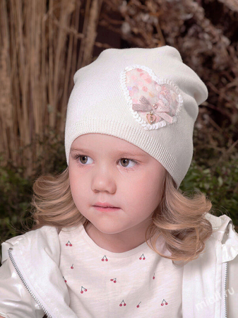 Шапка с закрепом для девочки до 5 лет. Резинка по низу изделия. Оригинальная аппликация в виде сердца с пайетками, играющими лучами света.