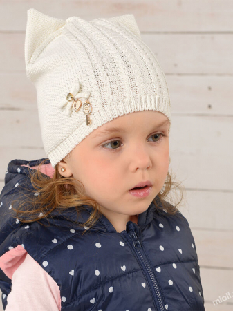 Дополнение: Шапочка с застроченными "ушками" с полосой рельефной вязки и эластичной резинкой по низу. Декор- бантик с камнем, подвески