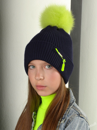 Дополнение: Двойная, с отворотом. Помпон из натурального меха на кнопке. Декор- съемная булавка с подвеской