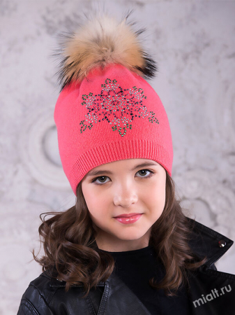 Дополнение: Для девочки, двойная с утеплителем, помпон мех натуральный енот на кнопке. Декор- композиция из страз
