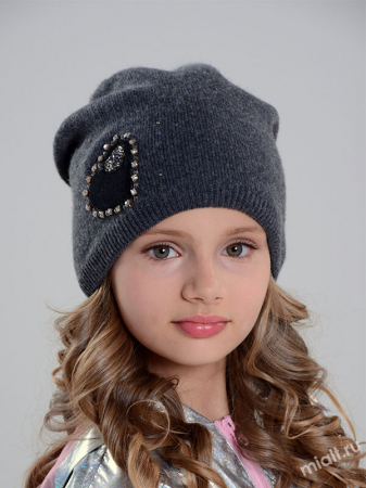 Демисезонная шапочка с закрепом по заднему вертикальному шву и резинкой по низу изделия. Благодаря флисовой подкладке не продувается ветром. Декорирована аппликацией в виде сердца, окантованного стразами и камушками в оправе.