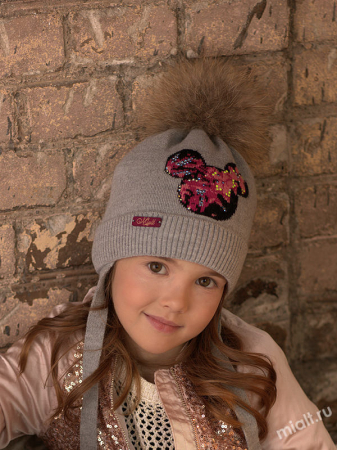 Зимняя шапка для девочки с отворотом в резинку и вшитыми ушками-завязками. Тонкий гипоаллергенный утеплитель IsoSoft сохраняет тепло и выводит лишнюю влагу наружу. Абсолютно безопасен даже для самых маленьких. Максимальное тепло при минимальной толщине. Хлопковый подклад гармонирует с вывязанным жаккардовым рисунком со стразами на лобной части шапочки. Сзади вшит ярлык с брендом производителя. Помпон из натурального меха енота отстегивается для удобства при стирке головного убора.