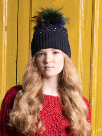 Дополнение: Для девочки, удлиненная форма, отворот. Помпон из натурального меха на тесьме. Декорирована стразами.