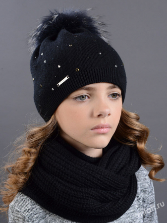 Дополнение: Для девочки, удлиненная форма. Двойная. Декорирована стразами. Помпон из натурального меха на тесьме.