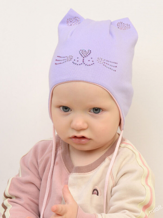 Дополнение: Двухслойная шапочка с декоративной подкладкой, с завязками. Декор- стразовая композиция спереди и на "ушках", сзади - бантик в тон завязок и подвеска