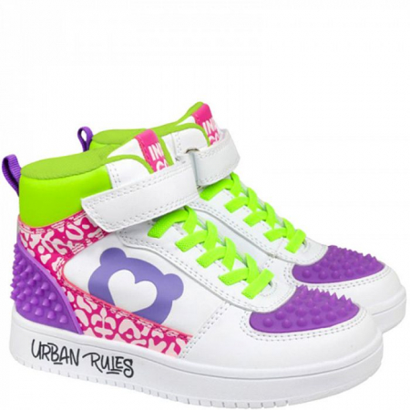 Кроссовки выглядят очень эффектно: множество контрастных деталей, принты в подошве, яркий принт в виде "мишки", оригинальные резиновые шипы в носочной и пяточной части. Высокие кроссовки изготовлены из современного материала - высококачественной экокожи. Подклад текстильный, благодаря ему внутри обуви создается оптимальный микроклимат для детских ног. Текстильная стелька анатомической формы поддерживает свод стопы в правильном положении. Подошва из материала ТЭП хорошо гнется, отличается прочностью и позволяет без усталости преодолевать большие расстояния. Ботинки детские крепятся на ноге с помощью яркой эластичной шнуровки и ремня, сбоку модели идет молния