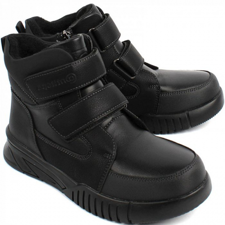 Модель выполнена из экокожи черного цвета и удобно фиксируется на липучки. Подкладка и стелька из утепленного баечного текстиля обеспечат тепло и уют детским ножкам во время носки.