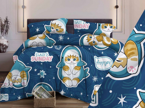 Комплект постельного белья Кот-Акула бязь (арт. 01601279677-1.5 спальный)