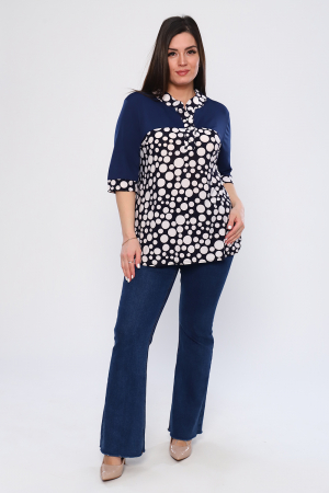 Туника прямого покроя подобрана на паты, рукав 3/4 на манжете. Передняя полочка на кокетке, комбинированная в двух цветах, спинка цветная. Удобна, практична.