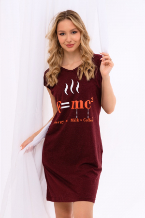 Туника для дома слегка приталенного силуэта с внутренними карманами в боковых швах. На изделии изображена оригинальная печать, где формула энергии обозначает молоко и кофе в квадрате. Очень удобный крой со спущенной проймой. Благодаря полиэстеру в составе, изделие хорошо держит форму.