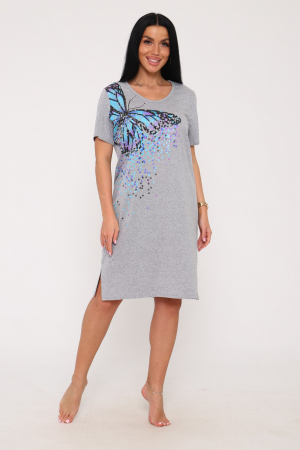 Туника женская выполнена из меланжирового трикотажного полотна кулирка. Туника свободного силуэта, втпчной рукав, горловина окантована, по бокам низа разрезы, на передней полочке выполнена печать.