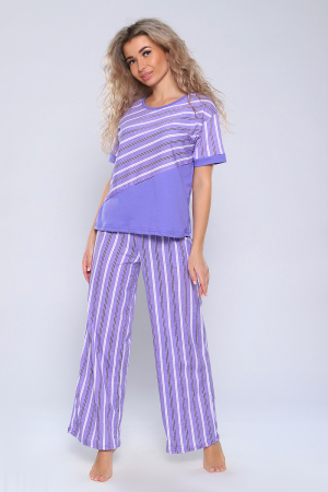 Костюм состоит из брюк и футболки. Брюки широкие с карманами. Футболка с короткими рукавами с манжетами. Идеальный повседневный вариант.