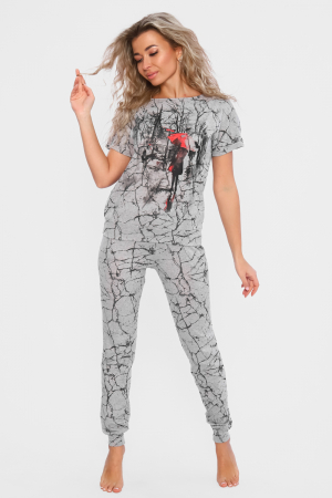 Костюм повседневный, универсального назначения для работы и отдыха. Футболка с цельнокроеным удлиненным рукавом на манжете, горловина лодочка по низу притачной пояс, брюки с внутренними карманами и манжетой по низу.