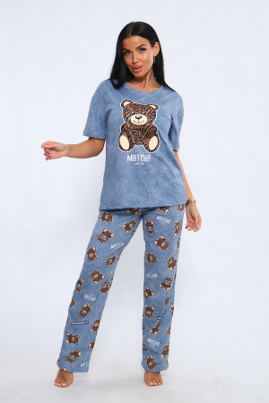 Костюм женский футболка и брюки. Футболка свободного кроя. Рукав короткий на спущенном плече. Брюки прямого кроя на резинке.