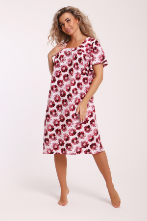 Сорочка свободного кроя с рукавами - крылышками. По линии груди заложены складки. В центре выреза декольте атласный бантик.