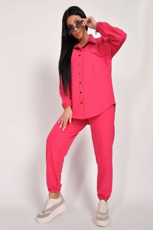 Стильный женский костюм. Рубашка на клепках и джоггеры на резинке. Костюм изготовлен из качественного футера 2-х нитки, ткань приятная к телу и практичная в носке. Незаменимая вещь в гардеробе каждой модницы! Удобный крой, модель оверсайз, благодаря чему костюм совершенно не сковывая движения. Костюм можно приобрести для себя, но также он будет отличным подарком для подруги или мамы. Стань самой модной и привлекательной в современном образе от бренда Ландыш