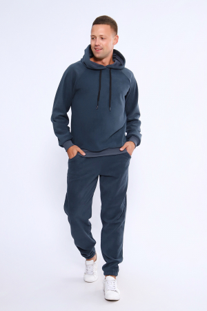 Уютный мужской костюм двойка, среднего объема, из ультра мягкого, нежного с легким сатиновым отливом интерсофта в виде барашка. Изнаночная сторона ткани гладкая, без начеса, что не даст лишнего объема. Представленный комплект, состоит их толстовки и брюк на резинке. Толстовка с рукавом - реглан, самый подходящий вариант на любой окат плеча. Толстовка с капюшоном который имеет кулису со вставленным внутрь шнурком контрастного цвета. В зависимости от партии цвет шнурка может меняться. Капюшон вшит в горловину с небольшим нахлестом по центру горловины. По низу изделия и рукавов пришито кашкорсе в цвет. Брюки прямые среднего объема, с боковыми карманами, низ обработан в подгибку на резинке. Пояс эластичный и отстрочен на специальной поясной машине. Этот костюм отлично подойдет как для дома, так и для прогулок, отдыха на природе и для занятия спортом. Приятные тактильные свойства ткани будут вызывать у вас самые положительные эмоции. На фото модель представлена в 48 размере.