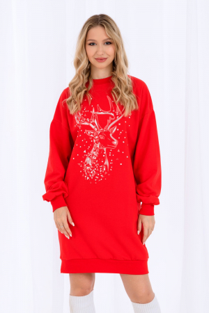 Олени - неотъемлемый атрибут Рождества. Традиция использовать в новогоднем убранстве рождественских оленей завоевала большую популярность во всём мире. В этой уютной удобной домашней тунике из футера двух нитки с начёсом комфортно находиться в домашней обстановке. В ней можно встретить праздник, использовать в повседневной носке и в качестве подарка. Туника свободного кроя, рукава с напуском. Все манжеты на изделии выполнены из плотной рибаны с лайкрой. Длина рукава в измерениях указана от основания шеи. Изделие украшено шелкографией с серебристым глиттером.
