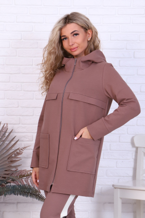 Толстовка женская прямого силуэта с двумя карманами по бокам, на кокетке отделка в виде планок, рукава на манжетах, капюшон.