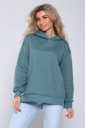Толстовка с длинными рукавами на манжетах, удобным капюшоном и небольшими разрезами в боковых швах. Спинка удлиненная. Свободный крой и мягкая ткань придадут Вам ощущение уюта.