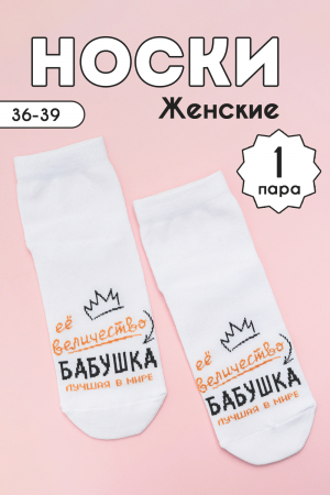 Комплект женских носков 1 пара. На верхней части носка надпись Ее величество Бабушка, лучшая в мире