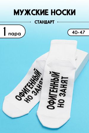Мужские носки в комплекте 1 пара. Широкая резинка по всей верхней части носка. Надпись на стопе Офигенный, но занят