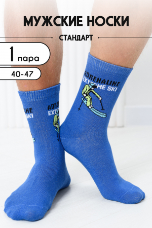 Комплект мужских носков 1 пара. На верхней части носка изображение горнолыжника.