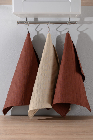 Набор кухонных вафельных полотенец размером 45*60- 3 штуки в упаковке. Вафельное полотно с крупной клеткой для лучшего впитывания влаги. Кухонные полотенца с петелькой для подвешивания. Главные достоинства кухонного полотенца: натуральный и гипоаллергенный состав, сохраняет форму после многочисленных стирок. Набор полотенец станет прекрасным подарком на Новый Год, День Рождения, 8 марта, на свадьбу, новоселье, день учителя или просто так для каждой хозяйки. Перед применением вафельные полотенца для кухни необходимо постирать, чтобы стали мягче. После стирки полотенце кухонное дает небольшую усадку и становится более пышным, так как это свойство вафельной ткани с составом 100% хлопок и говорит о том, что ткань не подвергалась химической обработке. Чтобы вернуть первоначальный вид необходимо погладить с паром и растянуть полотенце. Варианты применения набора кухонных полотенец: можно использовать как полотенце для рук, как сервировочные салфетки, для протирания посуды из керамики и стекла, как прихватку для кухни, как коврик в холодильник, как полотенце для детского сада.