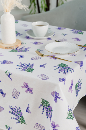 Стильная светлая скатерть из рогожки с приятным ярким принтом наполнит вашу кухню новыми красками. Рогожка является незаменимым материаллом на кухне. Изделия из этой ткани можно ежедневно стирать в машинке и не бояться усадки или потери цвета. Скатерти из рогожки износостойкие и практичные. К скатерти так же можно заказать полотенца Сиреневая дымка, они продаются отдельно.