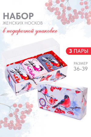 Новогодний подарочный набор женских носков. В комплекте 3 пары в красивой картонной упаковке