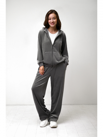 Пижама выполнена из высококачественного материала, состоящего на 95% из полиэстера и на 5% из эластана. Этот состав обеспечивает изделию мягкость, прочность и легкую эластичность, позволяя вам чувствовать себя максимально комфортно и свободно в любой ситуации. Комплект включает в себя джемпер с длинными рукавами и брюки. Джемпер имеет удобную застежку на молнию и просторные карманы, где вы можете хранить свои мелочи. Капюшон добавляет дополнительный уют и защиту от холода, а эластичные манжеты на рукавах обеспечивают идеальную посадку. Брюки свободного кроя с эластичным поясом гарантируют полный комфорт и свободу движений. Они идеально подойдут для расслабленного отдыха дома или спокойного сна. Элегантный серый цвет придаёт этой пижаме современный и стильный вид, который будет прекрасно смотреться на любом. Доступная в размерах S, M, L и XL