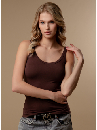 Женская майка из модала и хлопка очень мягкая на ощупь, приятная к телу, хорошо впитывает влагу. Воротник обрамлен каймой в цвет ткани. Изделие плотно облегает фигуру, не сковывая движений.