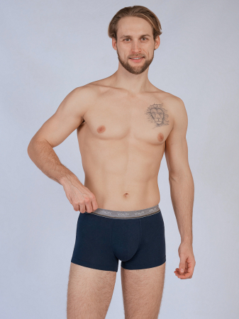Мужские трусы боксеры изготовлены из хлопка и выполнены в классическом синем цвете. Мягкая резинка на талии крепко фиксирует трусы на талии без давления, не оставляя следов на коже. Средняя посадка делает мужские трусы универсальными для повседневной носки.