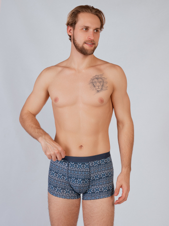 Мужские трусы боксеры изготовлены из хлопкового материала. Средняя посадка обеспечивает баланс между свободой движений и комфортной фиксацией, а мягкая эластичная резинка на талии не сдавливает и не натирает кожу. На мужские трусы нанесен принт с изображением узоров.