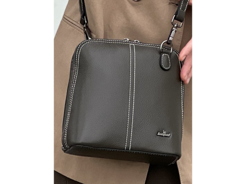 Длинный ремень с возможностью регулировки. Внутри: два отделения, между ними перегородка в виде кармана на молнии. Дополнительно два кармана для аксессуаров, один из которых застегивается на молнию. Снаружи: сзади карман для мелочей на молнии.