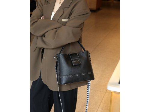 Одна короткая ручка. Текстильный ремень на плечо + длинный кожаный ремень с возможностью регулировки. Три основаных отделения. Одно застегивается на молнию, внутри перегородка в виде кармана на молнии, так же карман для телефона и дополнительный карман для аксессуаров на молнии. Два других отделения застегиваются на магнитную клепку.