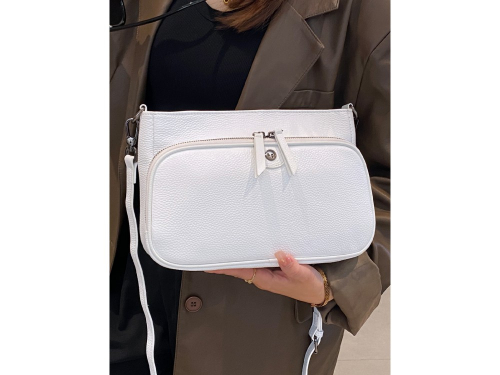 Сумка женская из натуральной кожи с регулируемым ремнём. Данная модель совмещает в себе сумку и кошелёк одновремено. В одной части сумки 2 основных отделения, которые заделяет дополнительное отделение на молнии, так же есть карманы для мелочей. Во 2 части сумки, которая в форме клатча, 2 основных оделения, которые разделяются дополнительным отделением на молнии, так же есть карманы для банковских карт и мелочей.