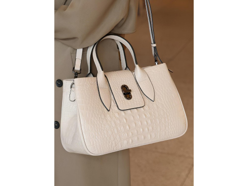 Описание: две короткие ручки. Кожаный регулируемый ремень на плечо . Внутри 3 основных отделения, одно из которых застёгивается на молнию.Также в основын отделениях имеются дополнительные карманы для мелочи и телефона.