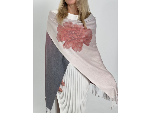 Палантин пион: первая сторона рисунок, вторая сторона деграде.