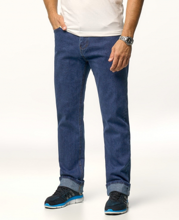 Мужские джинсы с застежкой на молнию и пуговицу, свободный прямой крой не сковывает движения. Модель выполнена из стрейч денима, материал с небольшим эффектом эластичности позволяет достичь оптимального комфорта в процессе ношения, абсолютно не сковывает движения.