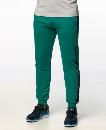 Мужские спортивные брюки имеют удобные боковые карманы, пояс с эластичной резинкой + фиксирующий шнурок. Выполнены из смесовой ткани на основе хлопка с добавлением полиэстера и эластана. Такие брюки сочетают преимущества натуральных тканей, позволяют ногам хорошо "дышать", сохраняют теплообмен. Добавление полиэстера и эластана повышают уровень комфорта, изделие не теряет своей формы при длительном ношении, сохраняет яркость окраса.