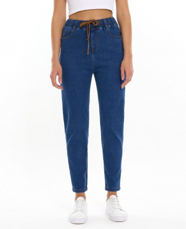 Женские джинсы с высокой посадкой, крой свободный в бёдрах и коленях зауженный книзу, широкий эластичный пояс с петлями под ремень и фиксирующим шнурком - обеспчат хорошую посадку. Выполнены из стрейч-денима, материал с небольшим эффектом эластичности позволяет достичь оптимального комфорта в процессе ношения.